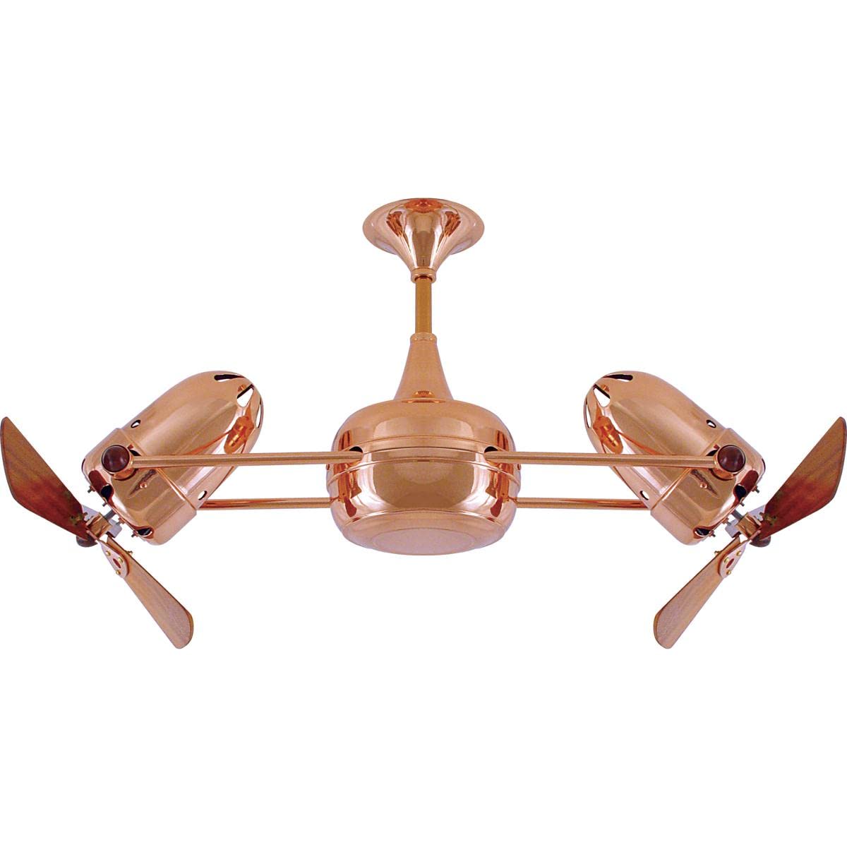 Matthews Fan DD-CP-WD Duplo Dinamico 360” rotational dual head ceiling fan in Polished Copper finish with solid sustainable mahogany wood blades.