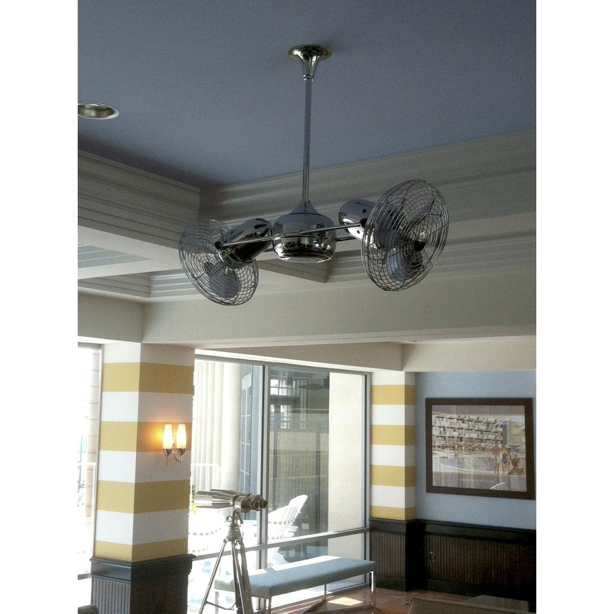 Few designs can match the timeless and sophisticated aesthetic of the Duplo-Dinamico 360° rotational fan. Other manufacturers have tried to reproduce this unique design, though all have proven to be of lesser quality and durability. The fan heads can be infinitely positioned in 180-degree arcs for optimum air movement; the greater the angles of the motors to the horizontal support rods (up or down), the faster the axial rotation. A slow, controlled axial rotation is achieved by both fan head position and fan blade speed. Matthews 360° rotational fans circulate heat and air conditioning more efficiently than traditional paddle fans. Constructed of cast aluminum, heavy spun and stamped steel, the Duplo carries a limited lifetime warranty.