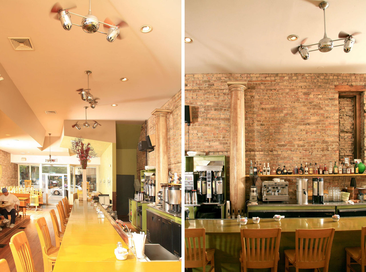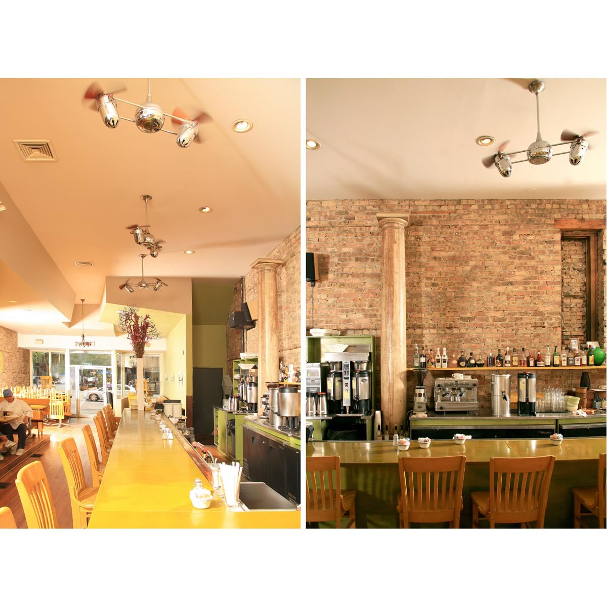 Few designs can match the timeless and sophisticated aesthetic of the Duplo-Dinamico 360° rotational fan. Other manufacturers have tried to reproduce this unique design, though all have proven to be of lesser quality and durability. The fan heads can be infinitely positioned in 180-degree arcs for optimum air movement; the greater the angles of the motors to the horizontal support rods (up or down), the faster the axial rotation. A slow, controlled axial rotation is achieved by both fan head position and fan blade speed. Matthews 360° rotational fans circulate heat and air conditioning more efficiently than traditional paddle fans. Constructed of cast aluminum, heavy spun and stamped steel, the Duplo carries a limited lifetime warranty.
