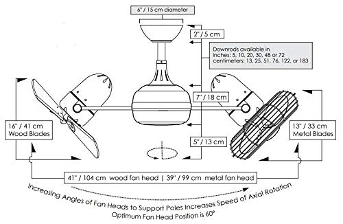 The double-headed 360° rotational fan, Dagny, with cylindrical central housing and straight, parallel arms, is designed in the retrospective aesthetic. The Dagny offers smooth and quiet axial rotation. Its fan heads can be infinitely positioned in 180-degree arcs for optimum air movement; the greater the angles of the motors to the horizontal support rods (up or down), the faster the axial rotation. A slow, controlled axial rotation is achieved by both fan head position and fan blade speed. Matthews rotational fans circulate heat and air-conditioning more efficiently than traditional paddle fans. Constructed of cast aluminum and heavy stamped steel, the Dagny carries a limited lifetime warranty. The Dagny is also available with a light kit as the Dagny-LK.