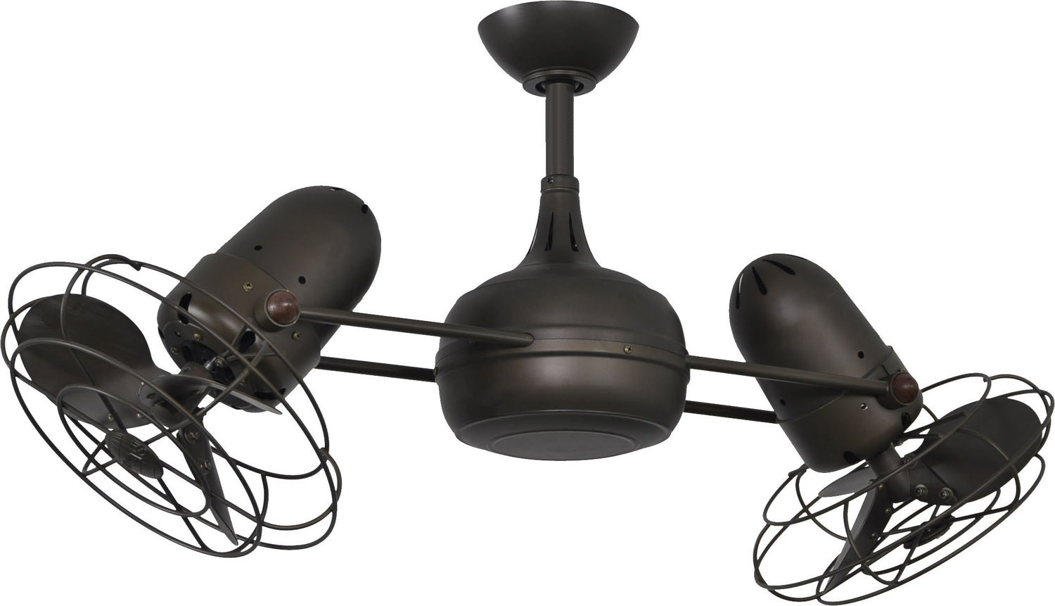 Matthews Fan DG-TB-MTL Dagny 360° double-headed rotational ceiling fan in Textured Bronze finish with metal blades.