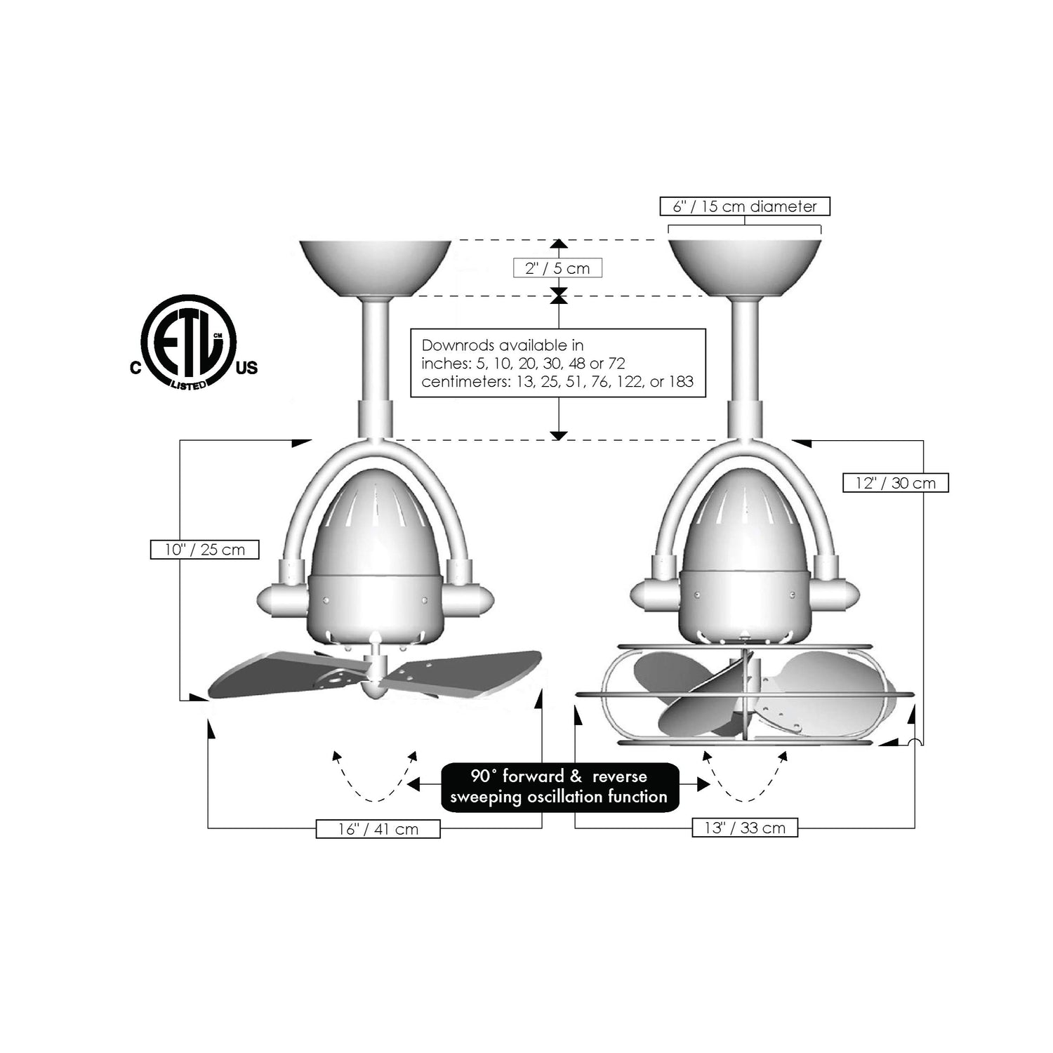 The Diane directional fan head provides maximum airflow with a sweeping 90° forward and reverse oscillation. The Diane can be hung in small, awkward spaces or in front of HVAC ducts to improve the efficiency of heating, ventilation or air conditioning of any space. Constructed of cast aluminum and heavy stamped steel, the Diane carries a limited lifetime warranty.