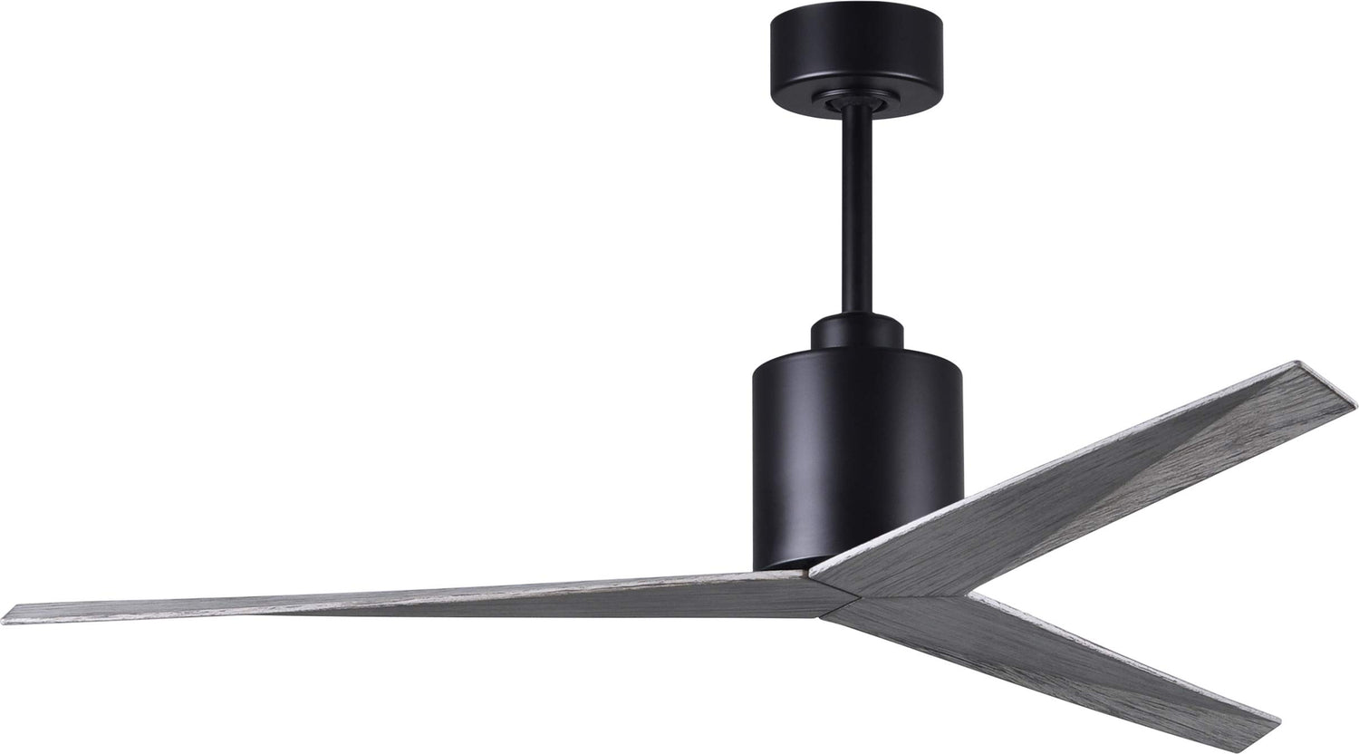Matthews Fan EK-BK-BW Eliza 3-blade paddle fan in Matte Black finish with barn wood all-weather ABS blades. Optimized for wet locations.