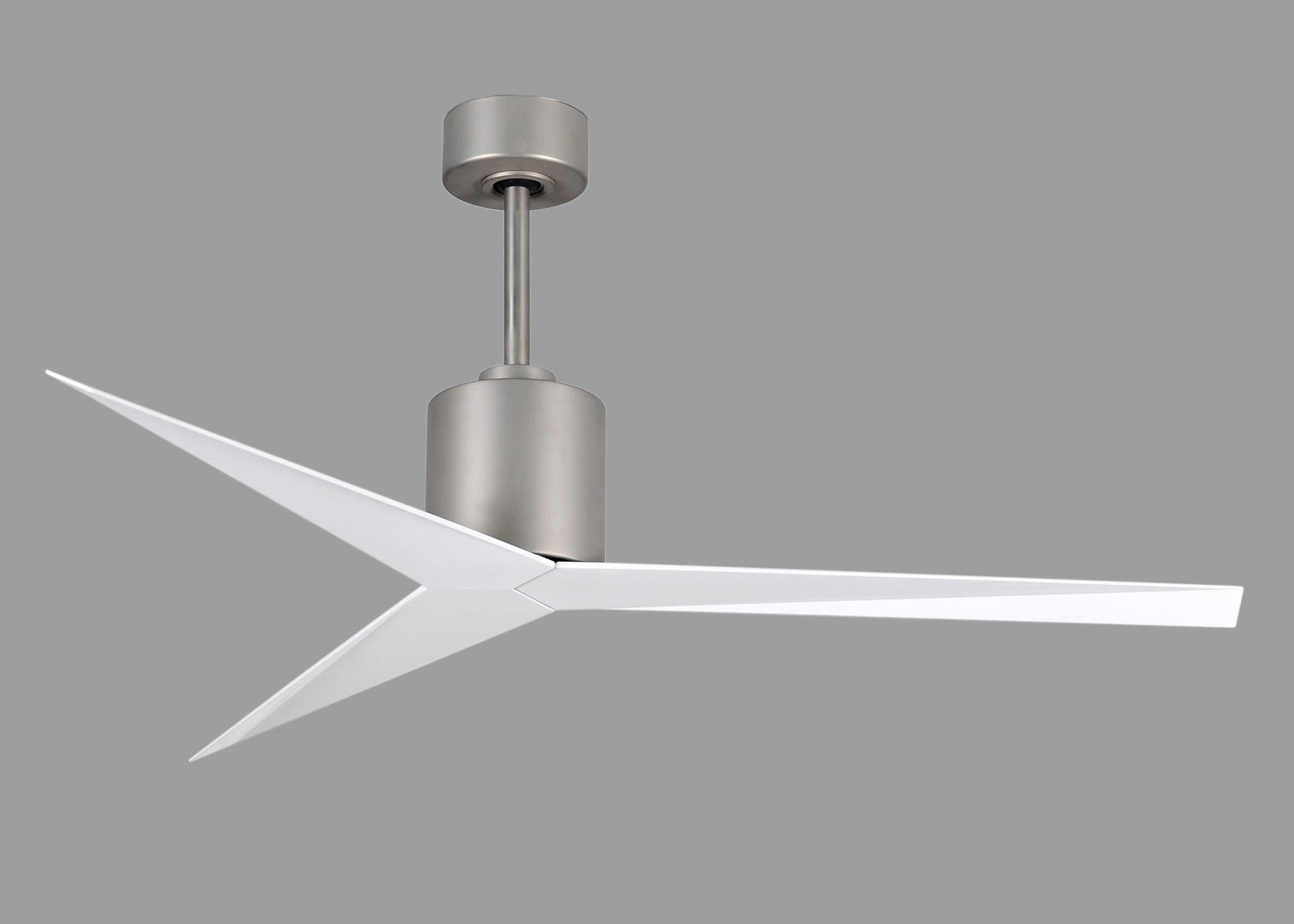 Matthews Fan EK-BN-WH Eliza 3-blade paddle fan in Brushed Nickel finish with gloss white all-weather ABS blades. Optimized for wet locations.
