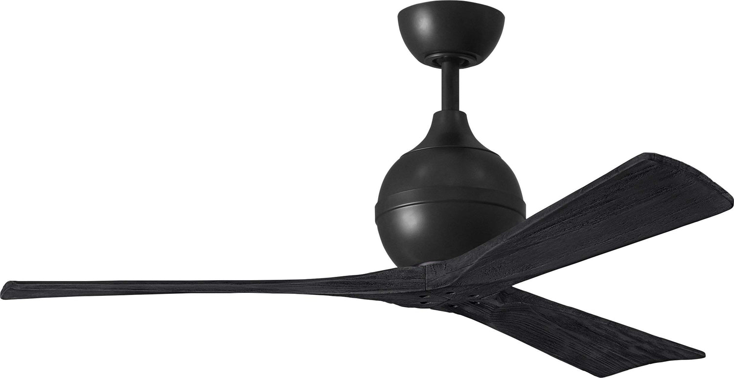 Matthews Fan IR3-BK-BK-52 Irene-3 three-blade paddle fan in Matte Black finish with 52" solid matte black wood blades.