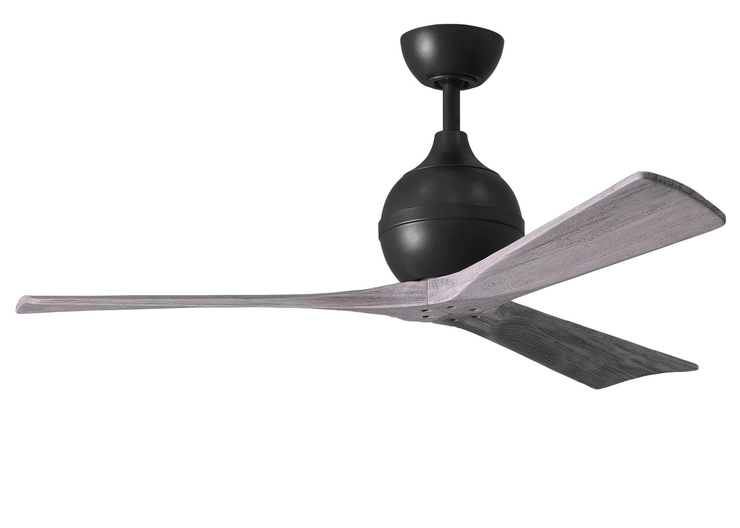 Matthews Fan IR3-BK-BW-52 Irene-3 three-blade paddle fan in Matte Black finish with 52" solid barn wood tone blades.