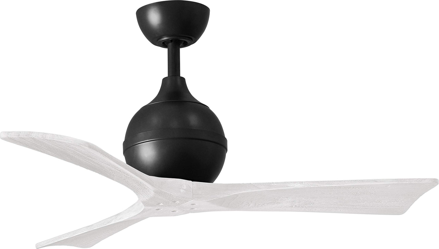 Matthews Fan IR3-BK-MWH-42 Irene-3 three-blade paddle fan in Matte Black finish with 42" solid matte white wood blades.