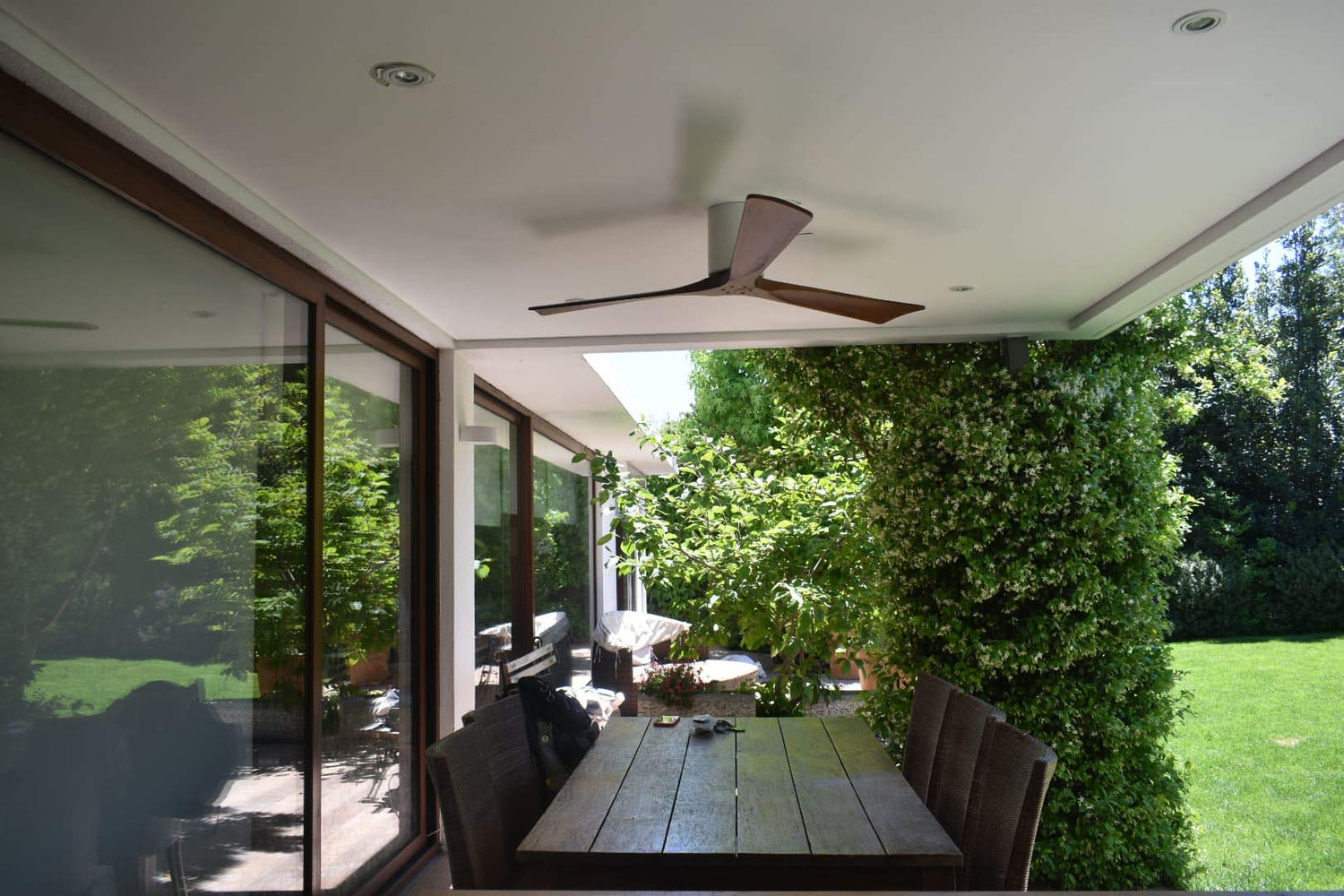 The Irene–3H ceiling-mount fan is rustic, yet strikingly modern with three neatly joined, solid wood matte black, matte white, walnut, gray ash, light maple or barn wood tone blades. A cylindrical motor housing complements its minimal profile. Irene–3H is streamline while still appearing warm and natural. Constructed of cast aluminum and heavy stamped steel, the Irene–3H has a limited lifetime warranty.