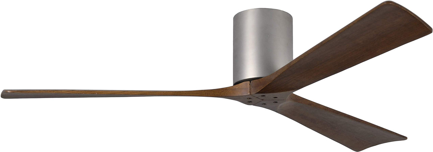 Matthews Fan IR3H-BN-WA-60 Irene-3H three-blade flush mount paddle fan in Brushed Nickel finish with 60” solid walnut tone blades.