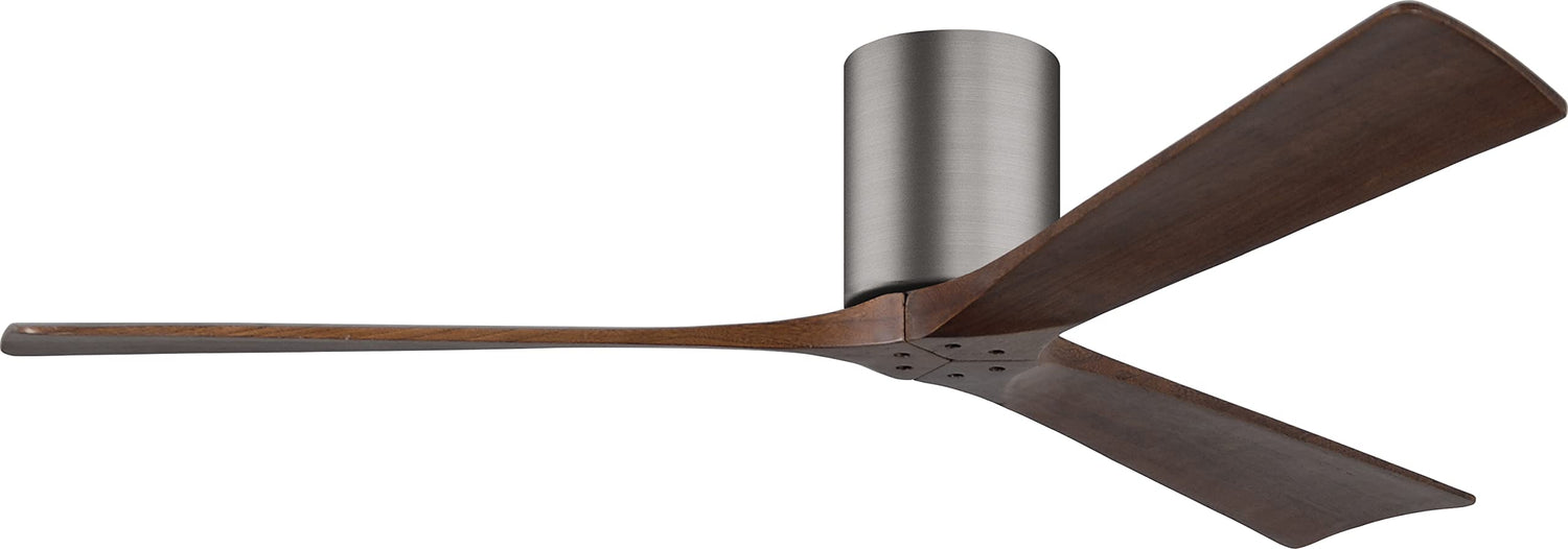 Matthews Fan IR3H-BP-WA-60 Irene-3H three-blade flush mount paddle fan in Brushed Pewter finish with 60” solid walnut tone blades.