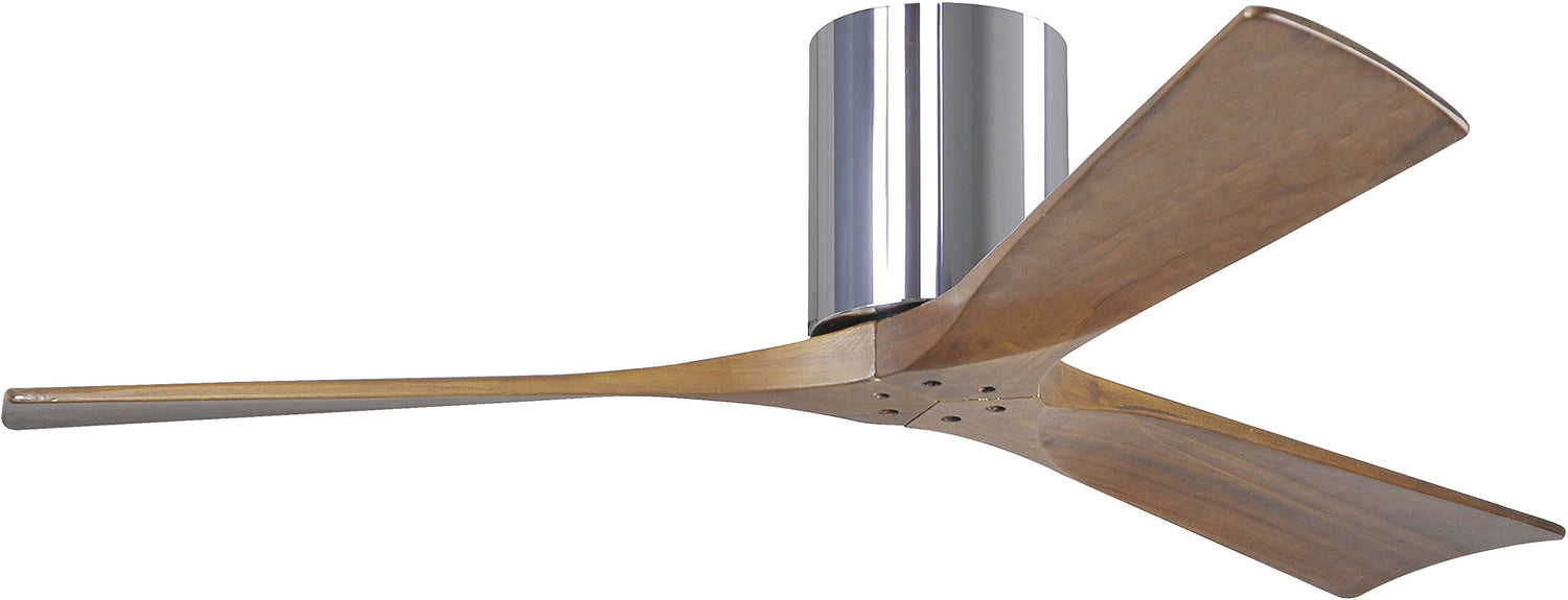 Matthews Fan IR3H-CR-WA-52 Irene-3H three-blade flush mount paddle fan in Polished Chrome finish with 52” solid walnut tone blades.