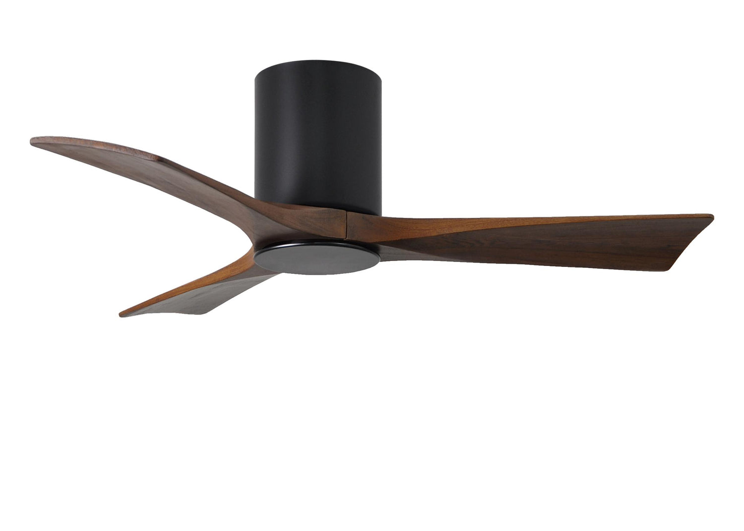 Matthews Fan IR3HLK-BK-WA-42 Irene-3HLK three-blade flush mount paddle fan in Matte Black finish with 42” solid walnut tone blades and integrated LED light kit.