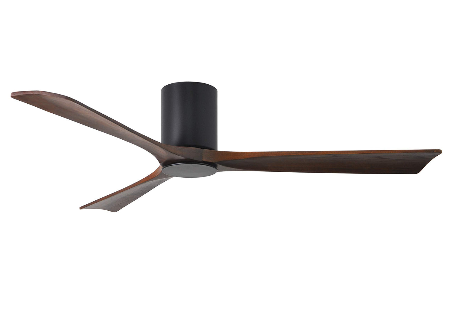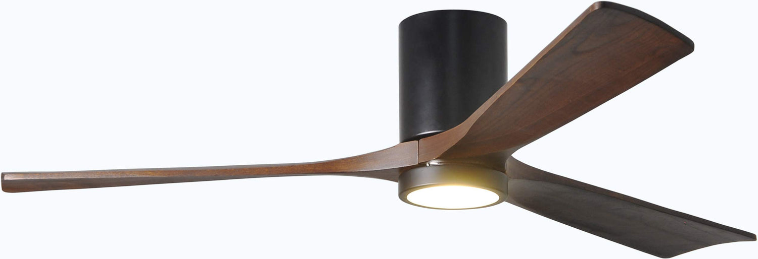 Matthews Fan IR3HLK-BK-WA-60 Irene-3HLK three-blade flush mount paddle fan in Matte Black finish with 60” solid walnut tone blades and integrated LED light kit.