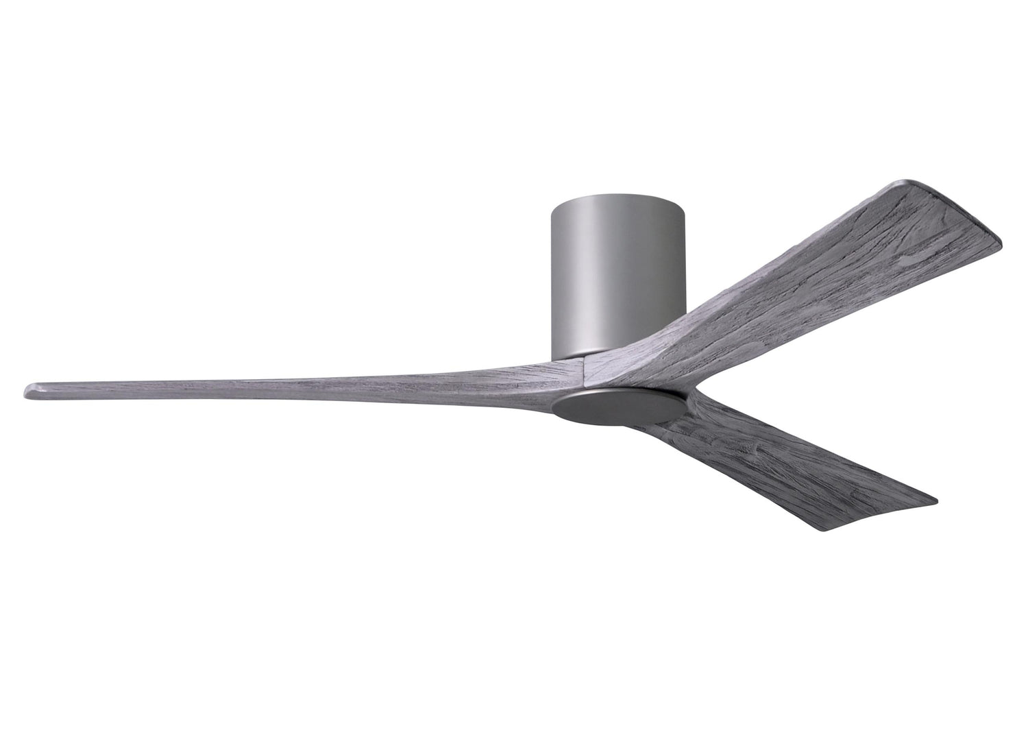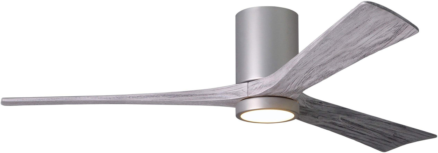 Matthews Fan IR3HLK-BN-BW-60 Irene-3HLK three-blade flush mount paddle fan in Brushed Nickel finish with 60” solid barn wood tone blades and integrated LED light kit.