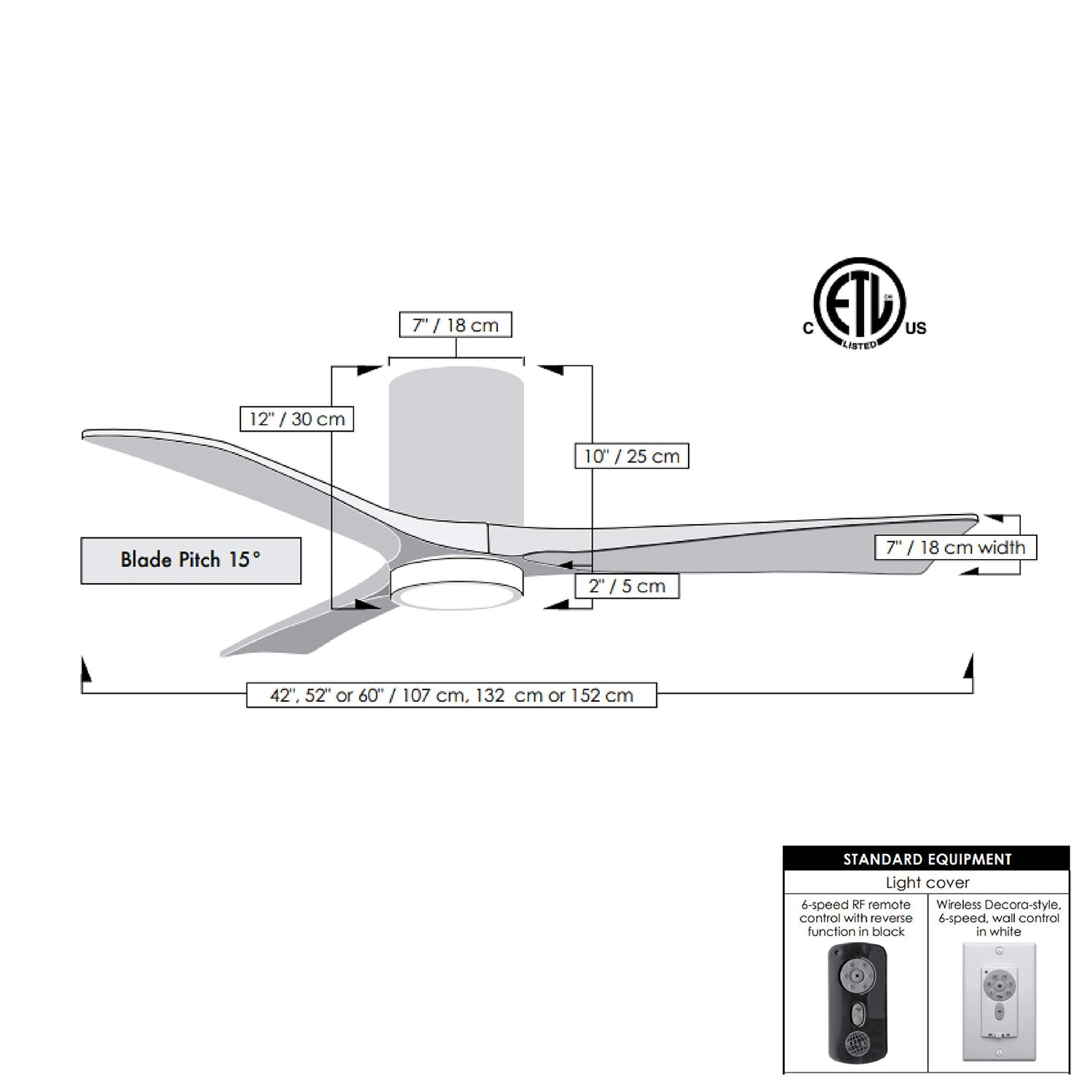 Matthews Fan IR3HLK-BN-WA-60 Irene-3HLK three-blade flush mount paddle fan in Brushed Nickel finish with 60” solid walnut tone blades and integrated LED light kit.
