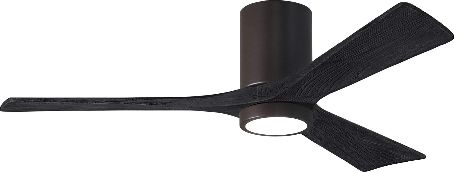 Matthews Fan IR3HLK-TB-BK-52 Irene-3HLK three-blade flush mount paddle fan in Textured Bronze finish with 52” solid matte black wood blades and integrated LED light kit.