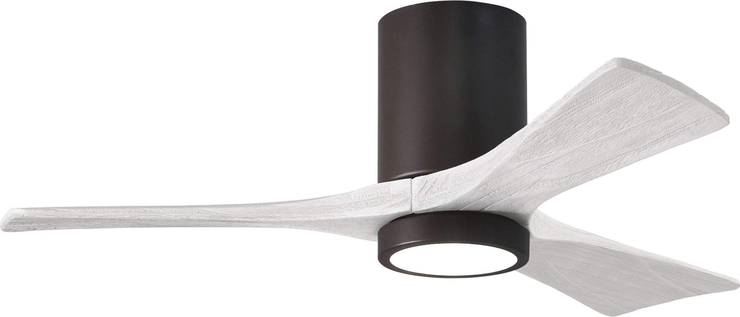 Matthews Fan IR3HLK-TB-MWH-42 Irene-3HLK three-blade flush mount paddle fan in Textured Bronze finish with 42” solid matte white wood blades and integrated LED light kit.