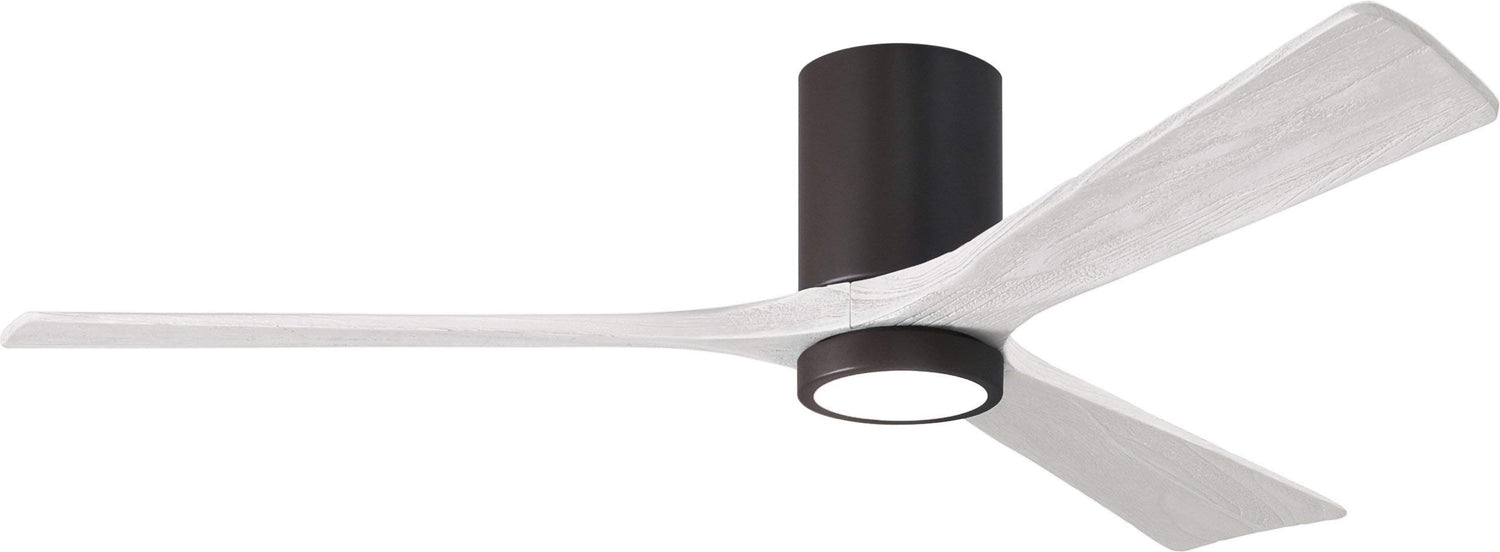 Matthews Fan IR3HLK-TB-MWH-60 Irene-3HLK three-blade flush mount paddle fan in Textured Bronze finish with 60” solid matte white wood blades and integrated LED light kit.