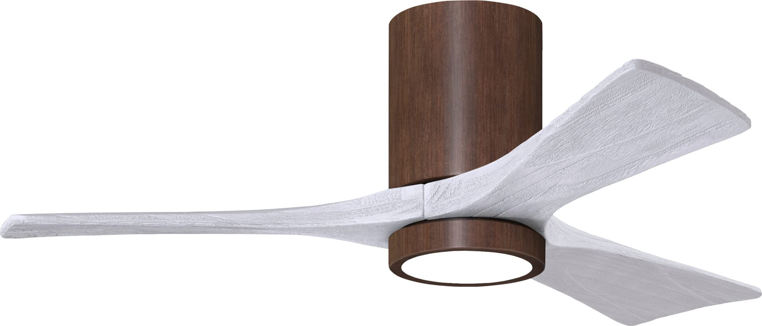 Matthews Fan IR3HLK-WN-MWH-42 Irene-3HLK three-blade flush mount paddle fan in Walnut finish with 42” solid matte white wood blades and integrated LED light kit.