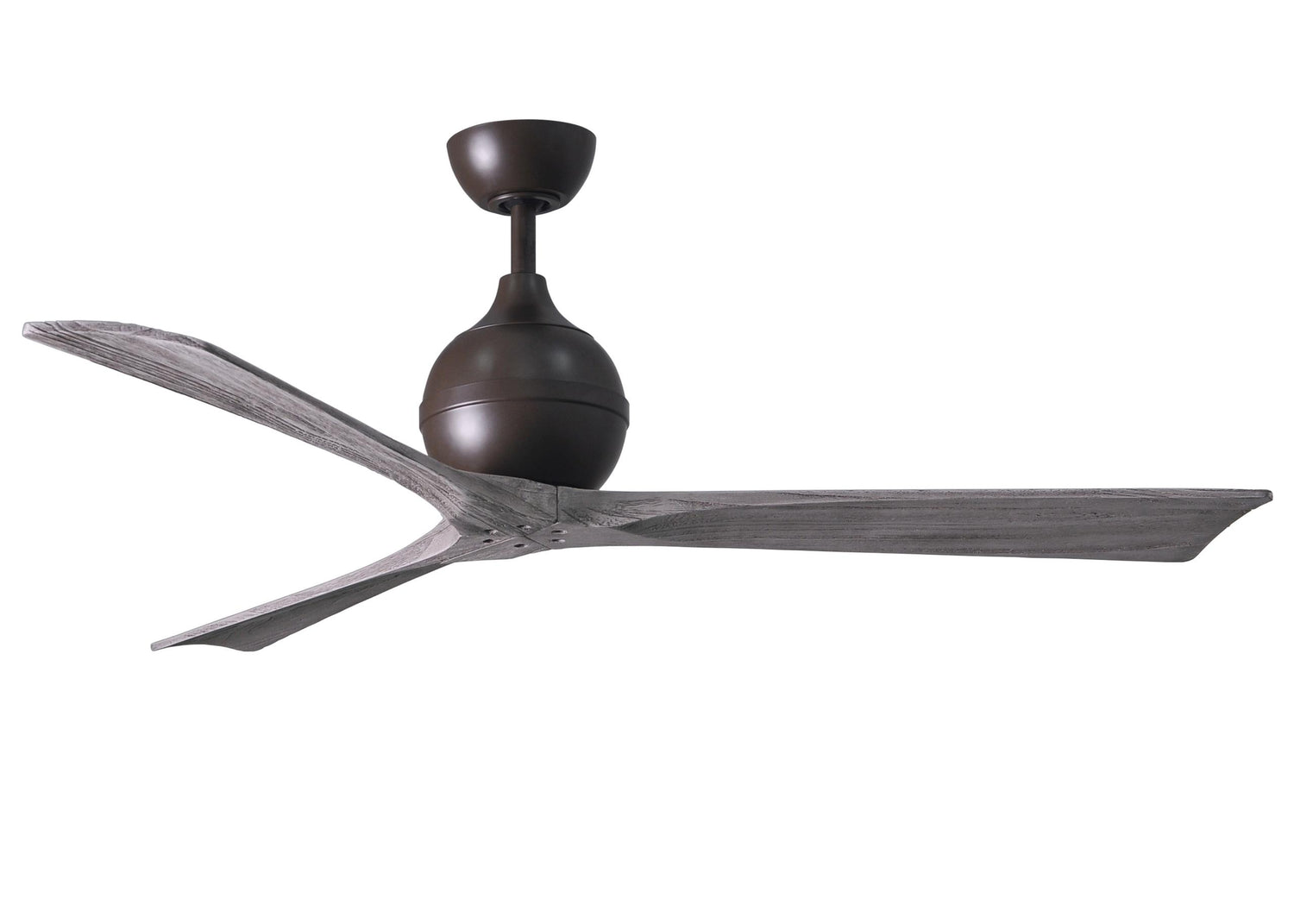 Matthews Fan IR3-TB-BW-60 Irene-3 three-blade paddle fan in Textured Bronze finish with 60" solid barn wood tone blades.