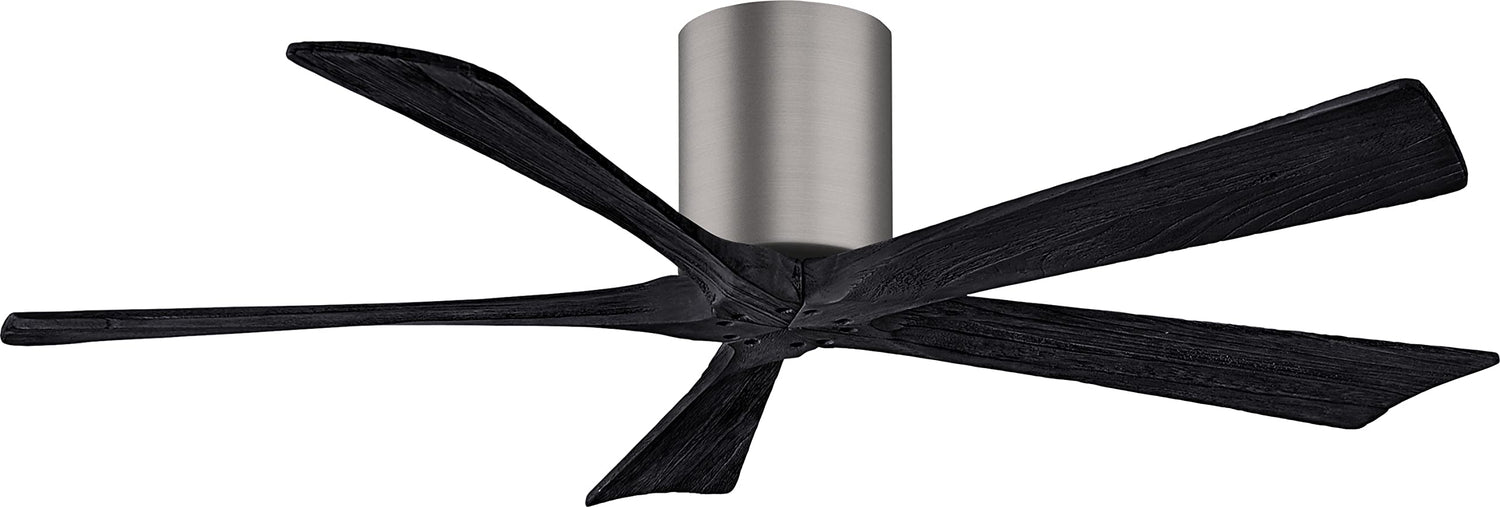 Matthews Fan IR5H-BP-BK-52 Irene-5H five-blade flush mount paddle fan in Brushed Pewter finish with 52” solid matte black wood blades.