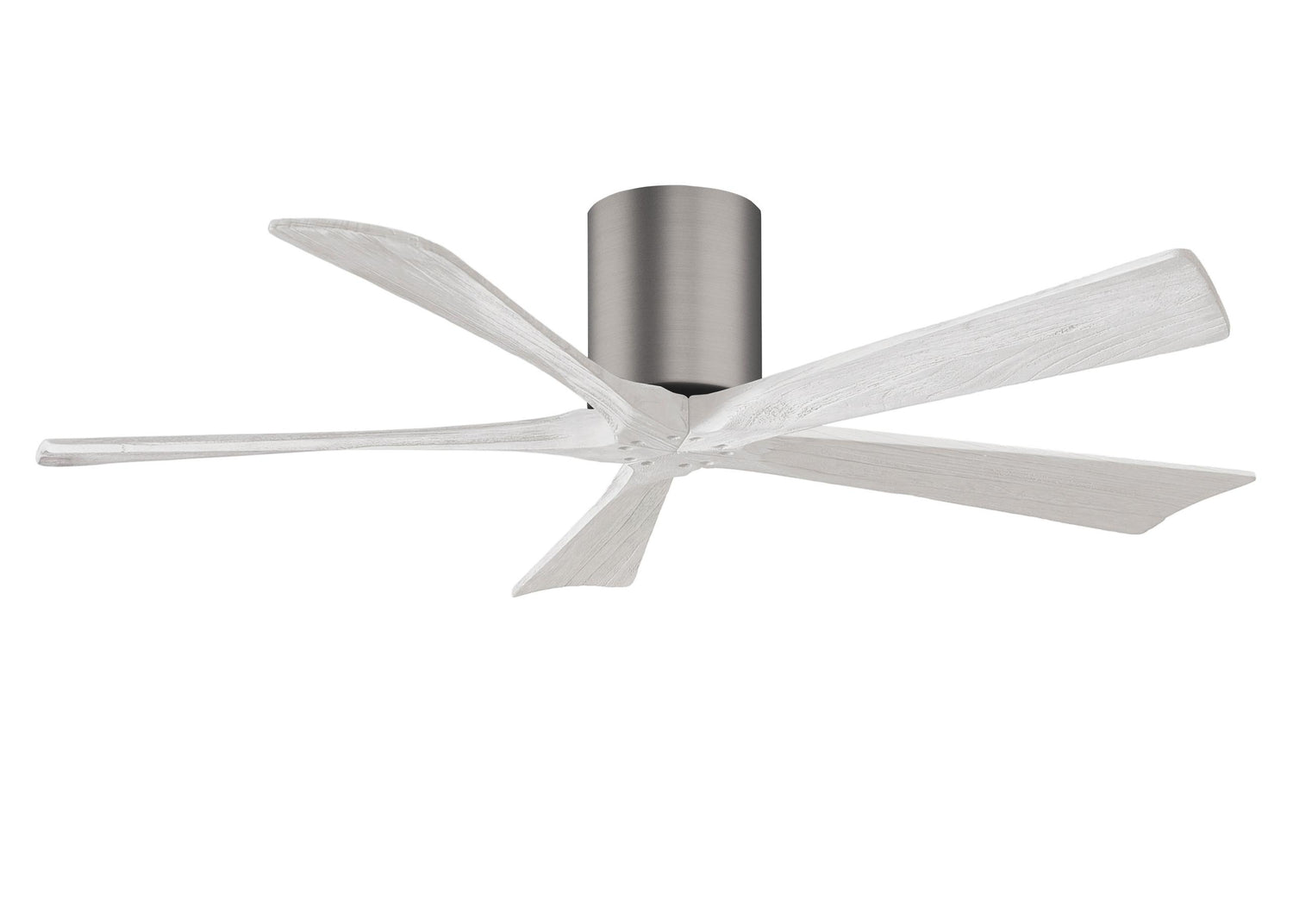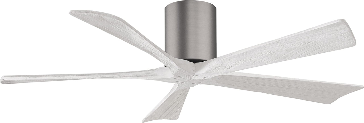 Matthews Fan IR5H-BP-MWH-52 Irene-5H five-blade flush mount paddle fan in Brushed Pewter finish with 52” solid matte white wood blades.