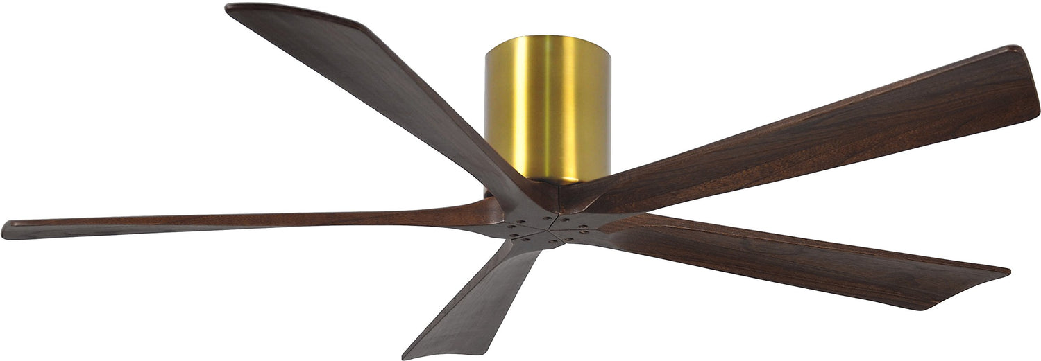 Matthews Fan IR5H-BRBR-WA-60 Irene-5H five-blade flush mount paddle fan in Brushed Brass finish with 60” solid walnut tone blades.