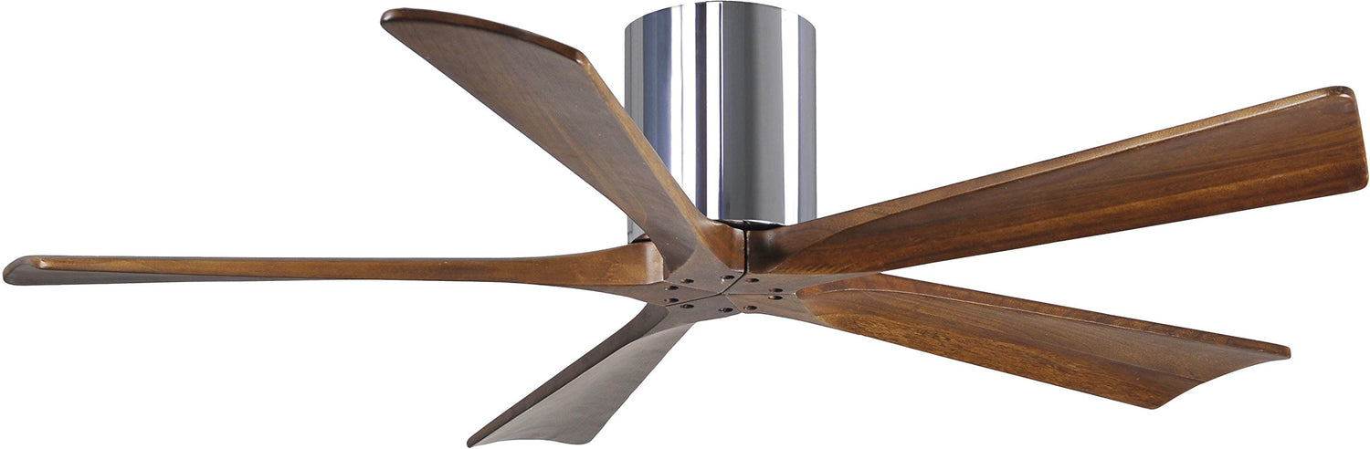 Matthews Fan IR5H-CR-WA-52 Irene-5H five-blade flush mount paddle fan in Polished Chrome finish with 52” solid walnut tone blades.