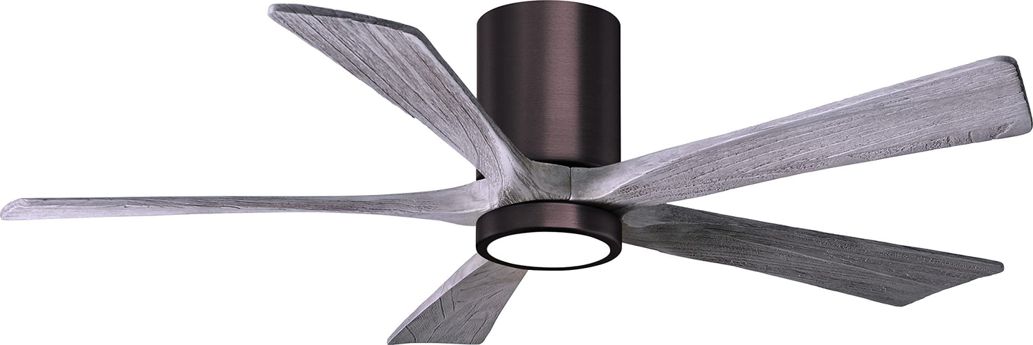 Matthews Fan IR5HLK-BB-BW-52 IR5HLK five-blade flush mount paddle fan in Brushed Bronze finish with 52” solid barn wood tone blades and integrated LED light kit.