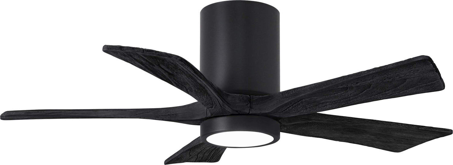 Matthews Fan IR5HLK-BK-BK-42 IR5HLK five-blade flush mount paddle fan in Matte Black finish with 42” solid matte black wood blades and integrated LED light kit.