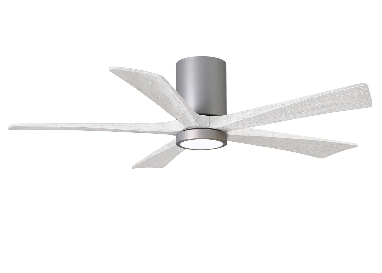 Matthews Fan IR5HLK-BN-MWH-52 IR5HLK five-blade flush mount paddle fan in Brushed Nickel finish with 52” solid matte white wood blades and integrated LED light kit.