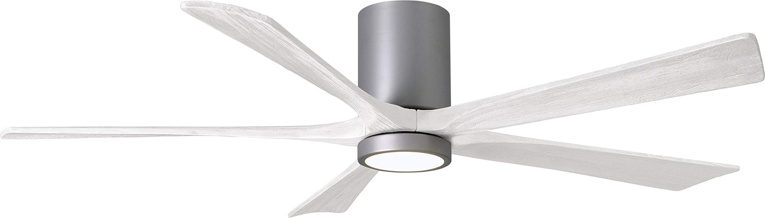 Matthews Fan IR5HLK-BN-MWH-60 IR5HLK five-blade flush mount paddle fan in Brushed Nickel finish with 60” solid matte white wood blades and integrated LED light kit.