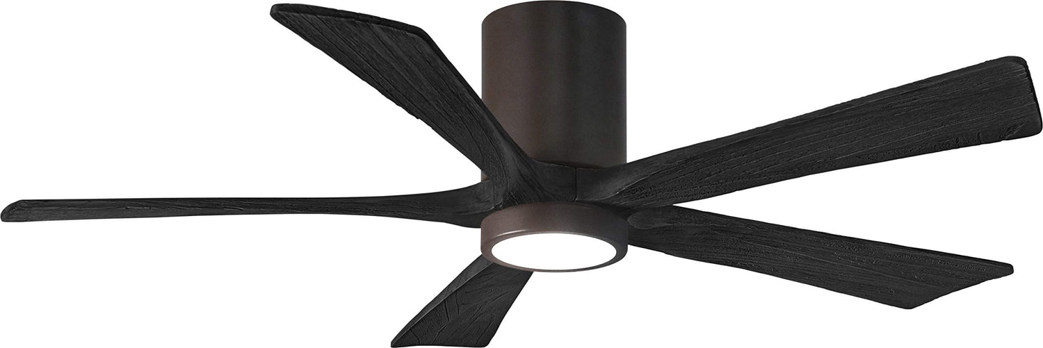 Matthews Fan IR5HLK-TB-BK-52 IR5HLK five-blade flush mount paddle fan in Textured Bronze finish with 52” solid matte black wood blades and integrated LED light kit.