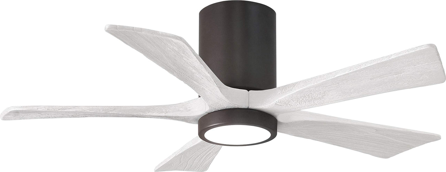 Matthews Fan IR5HLK-TB-MWH-42 IR5HLK five-blade flush mount paddle fan in Textured Bronze finish with 42” solid matte white wood blades and integrated LED light kit.