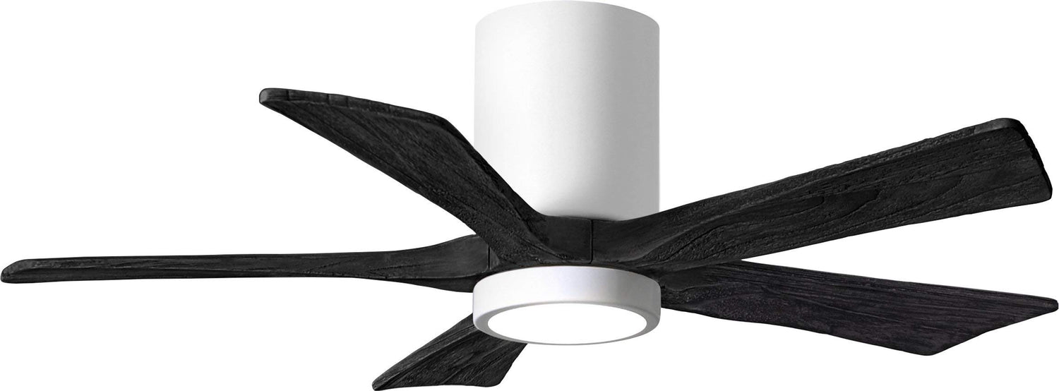 Matthews Fan IR5HLK-WH-BK-42 IR5HLK five-blade flush mount paddle fan in Gloss White finish with 42” solid matte black wood blades and integrated LED light kit.
