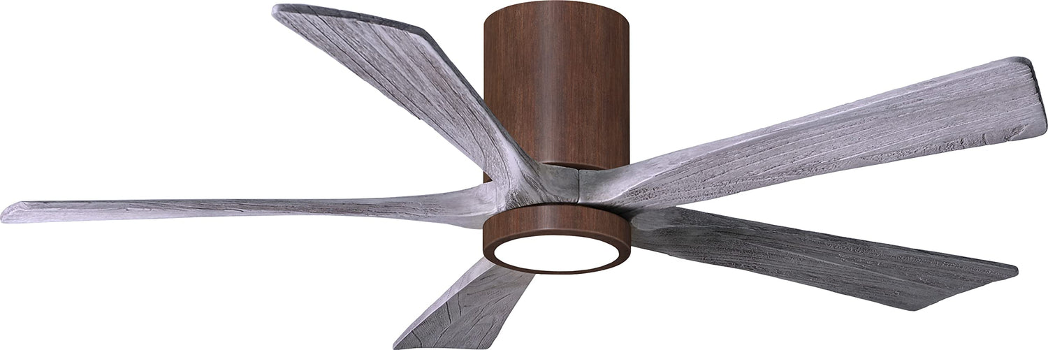 Matthews Fan IR5HLK-WN-BW-52 IR5HLK five-blade flush mount paddle fan in Walnut finish with 52” solid barn wood tone blades and integrated LED light kit.