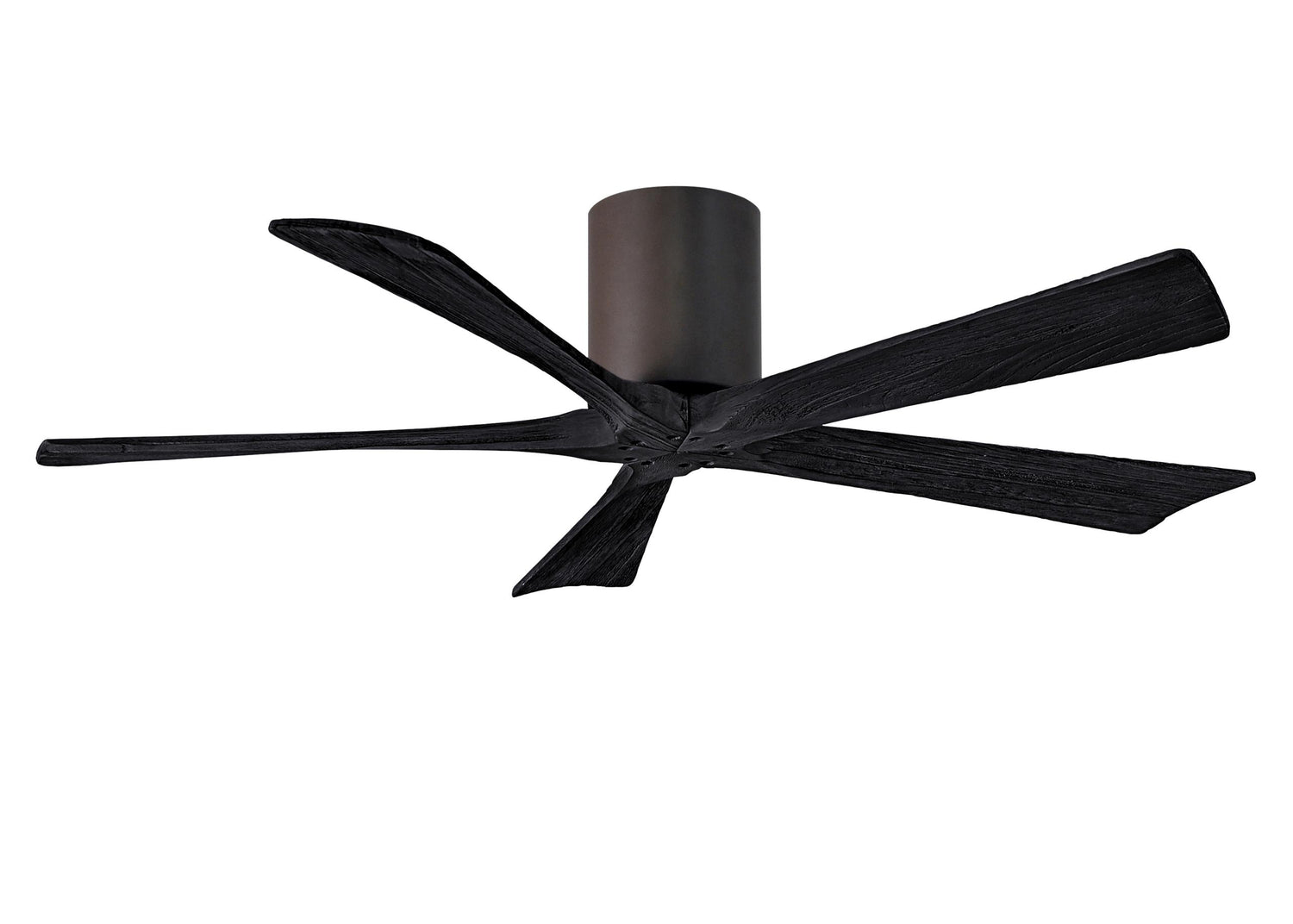 Matthews Fan IR5H-TB-BK-52 Irene-5H five-blade flush mount paddle fan in Textured Bronze finish with 52” solid matte black wood blades.
