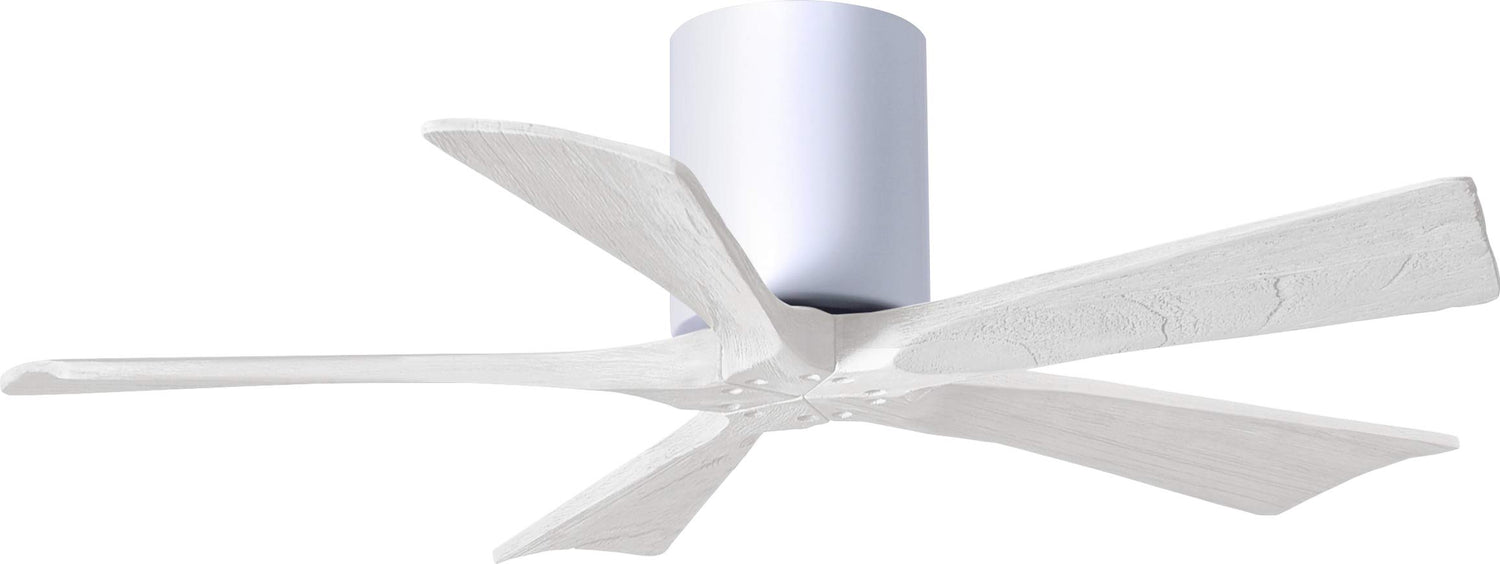 Matthews Fan IR5H-WH-MWH-42 Irene-5H five-blade flush mount paddle fan in Gloss White finish with 42” solid matte white wood blades.