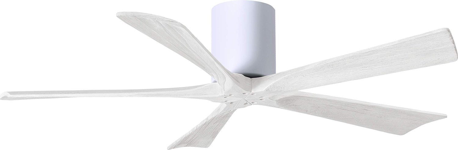 Matthews Fan IR5H-WH-MWH-52 Irene-5H five-blade flush mount paddle fan in Gloss White finish with 52” solid matte white wood blades.