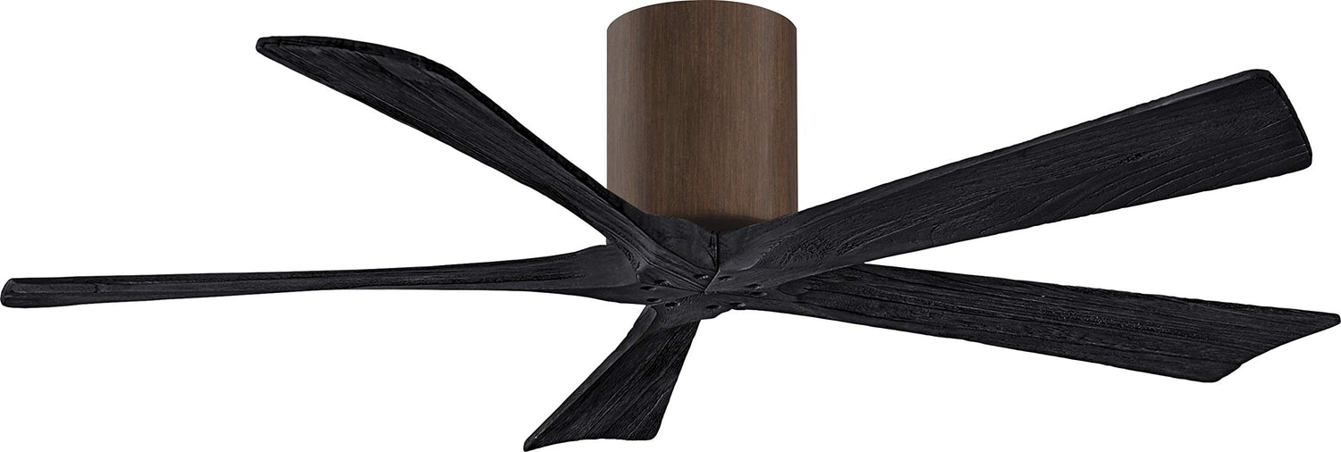 Matthews Fan IR5H-WN-BK-52 Irene-5H five-blade flush mount paddle fan in Walnut finish with 52” solid matte black wood blades.