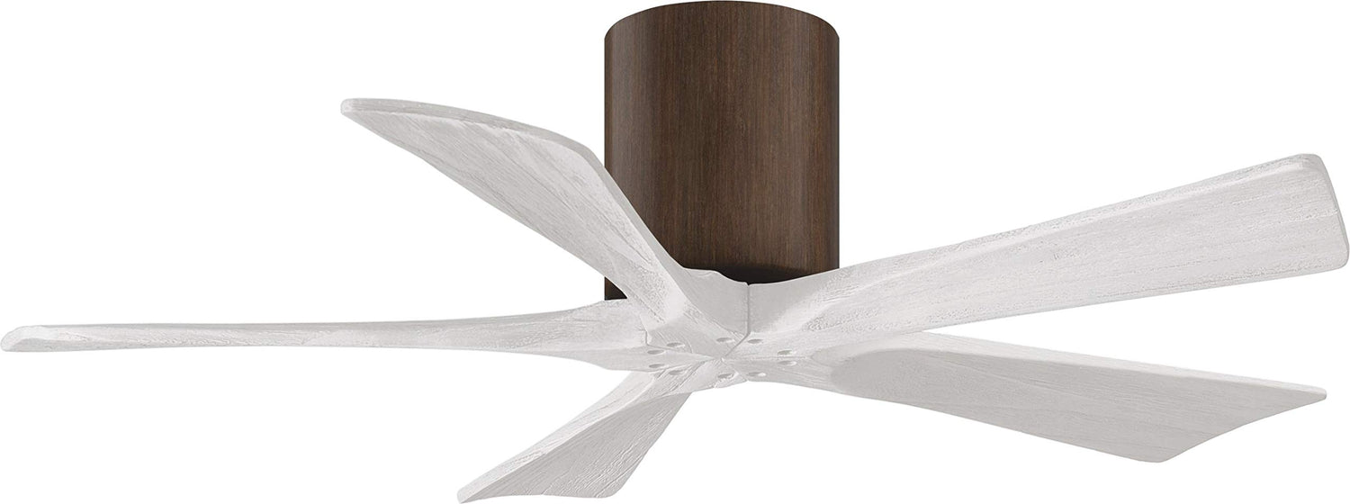 Matthews Fan IR5H-WN-MWH-42 Irene-5H five-blade flush mount paddle fan in Walnut finish with 42” solid matte white wood blades.