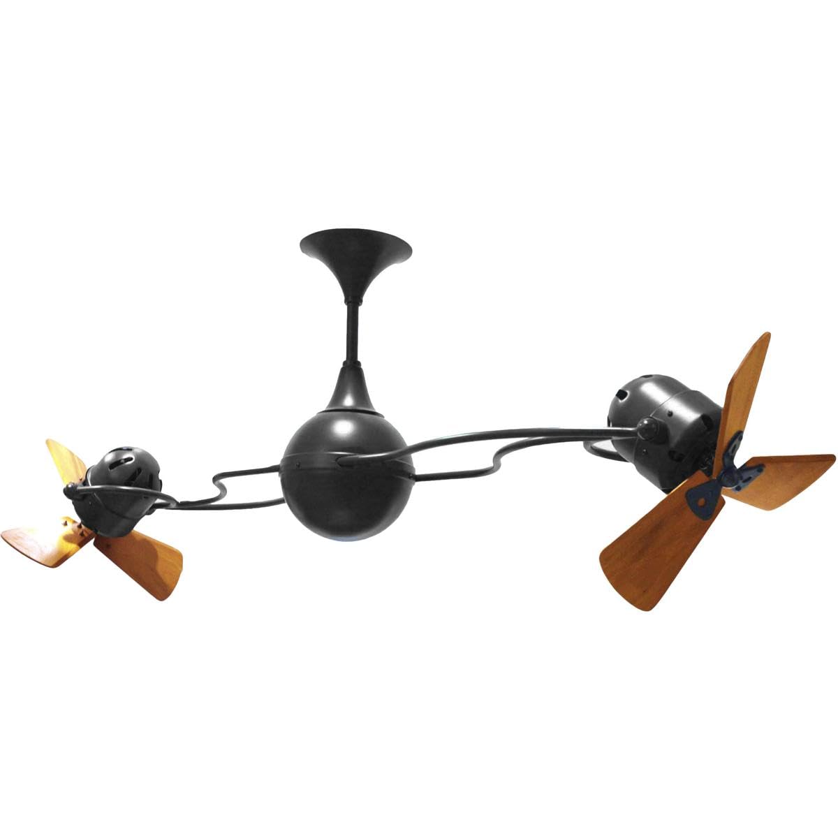 Matthews Fan IV-BK-WD Italo Ventania 360° dual headed rotational ceiling fan in Matte Black finish with solid sustainable mahogany wood blades.