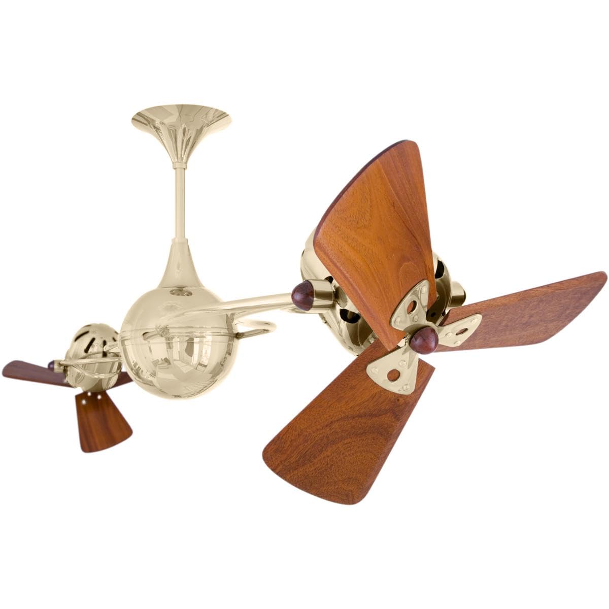 Matthews Fan IV-PB-WD Italo Ventania 360° dual headed rotational ceiling fan in polished brass finish with solid sustainable mahogany wood blades.