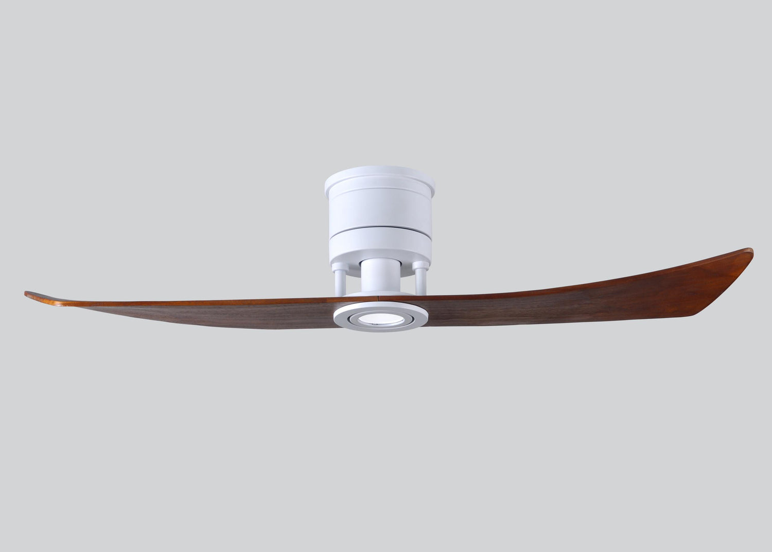 Matthews Fan LW-MWH-WA Lindsay ceiling fan in Matte White finish with 52" solid walnut tone wood blades and eco-friendly, dimmable LED light kit.