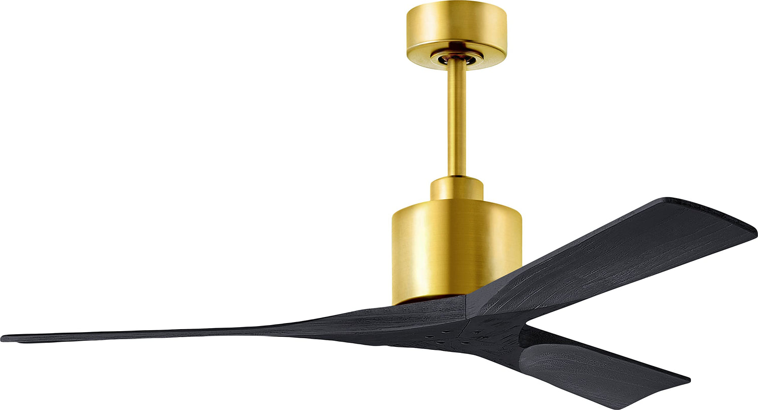 Matthews Fan NK-BRBR-BK-52 Nan 6-speed ceiling fan in Brushed Brass finish with 52” solid matte black wood blades
