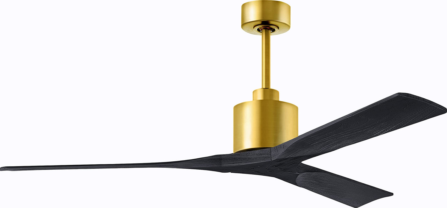 Matthews Fan NK-BRBR-BK-60 Nan 6-speed ceiling fan in Brushed Brass finish with 60” solid matte black wood blades