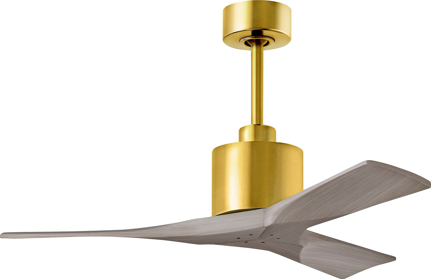 Matthews Fan NK-BRBR-GA-42 Nan 6-speed ceiling fan in Brushed Brass finish with 42” solid gray ash tone wood blades