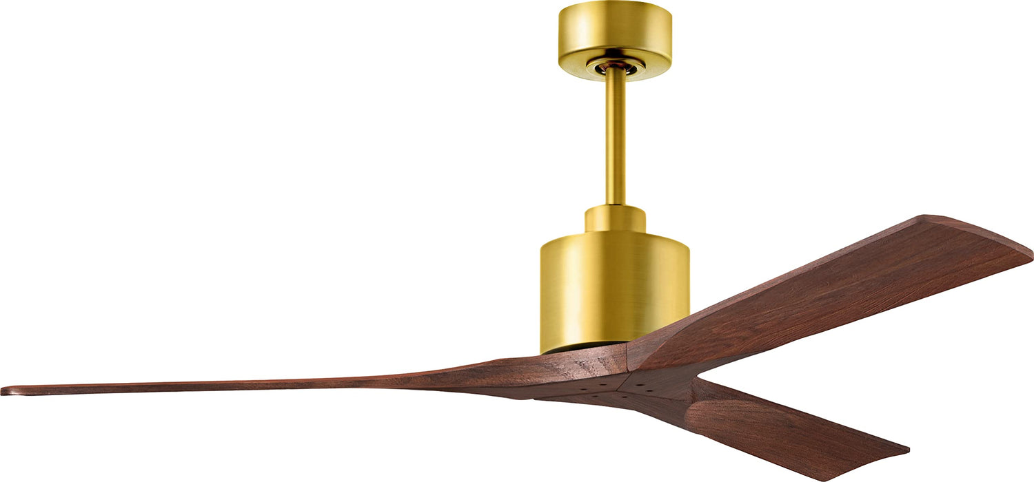 Matthews Fan NK-BRBR-WA-60 Nan 6-speed ceiling fan in Brushed Brass finish with 60” solid walnut tone wood blades