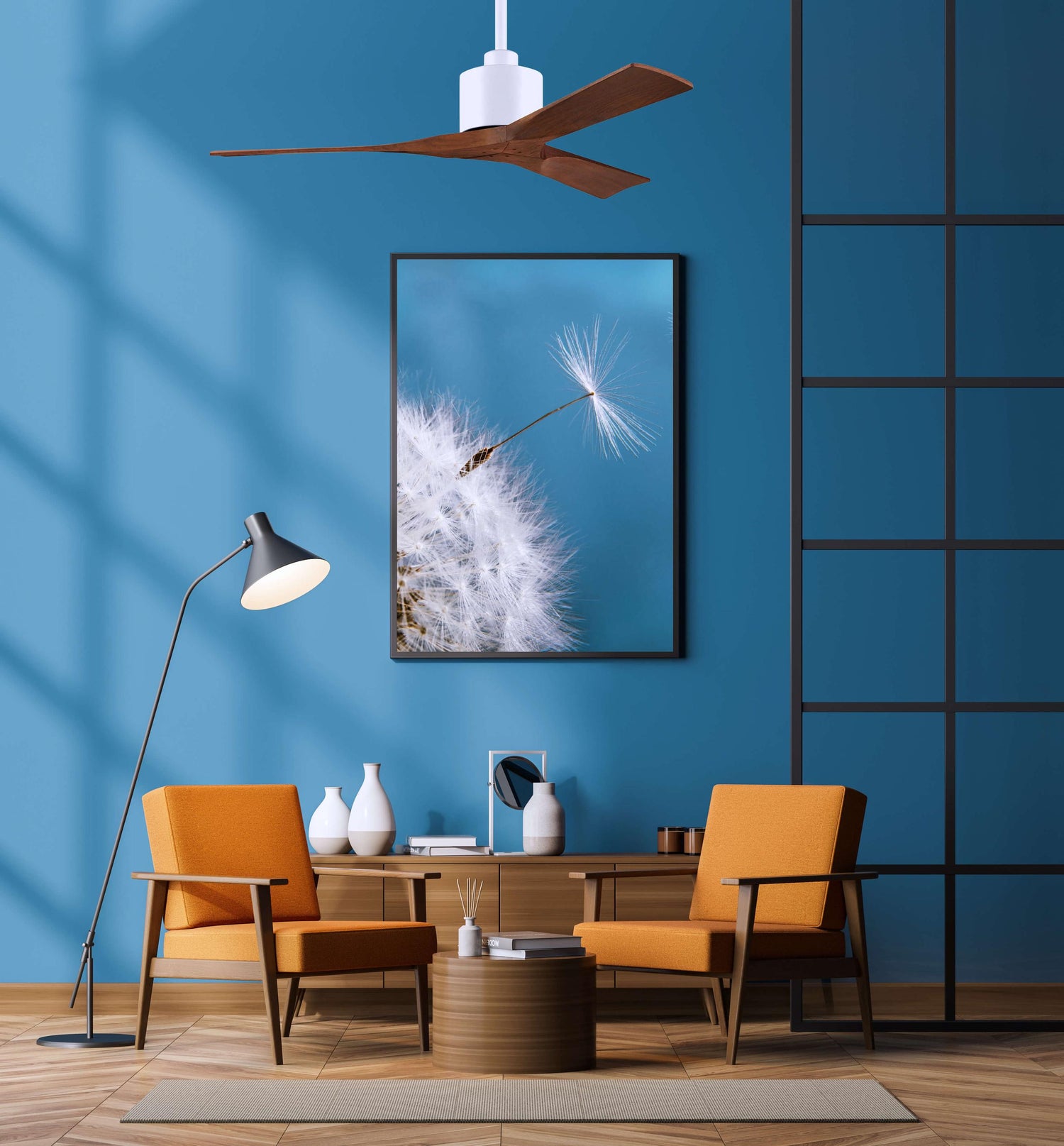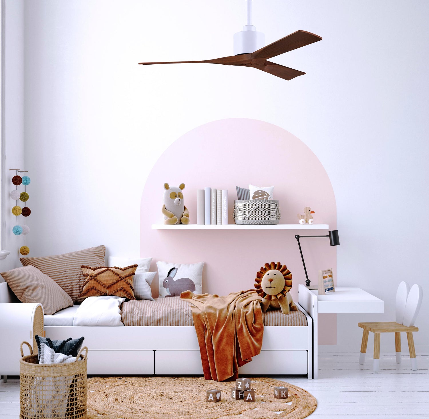 Matthews Fan NK-MWH-WA-52 Nan 6-speed ceiling fan in Matte White finish with 52” solid walnut tone wood blades