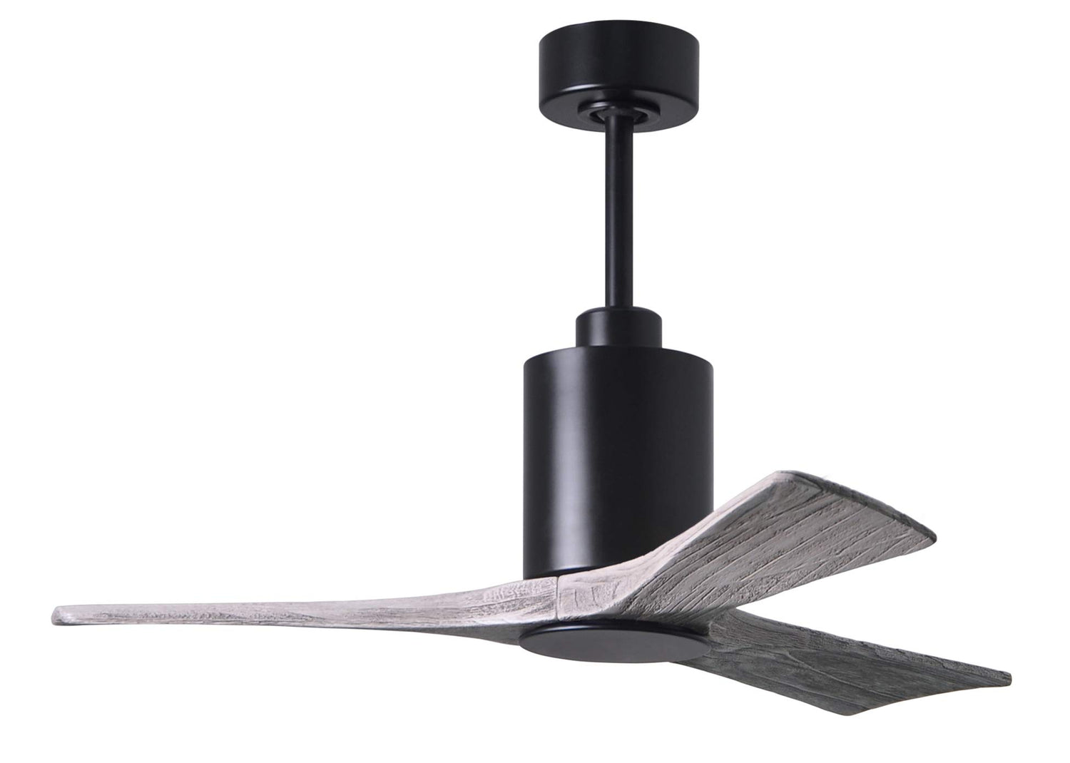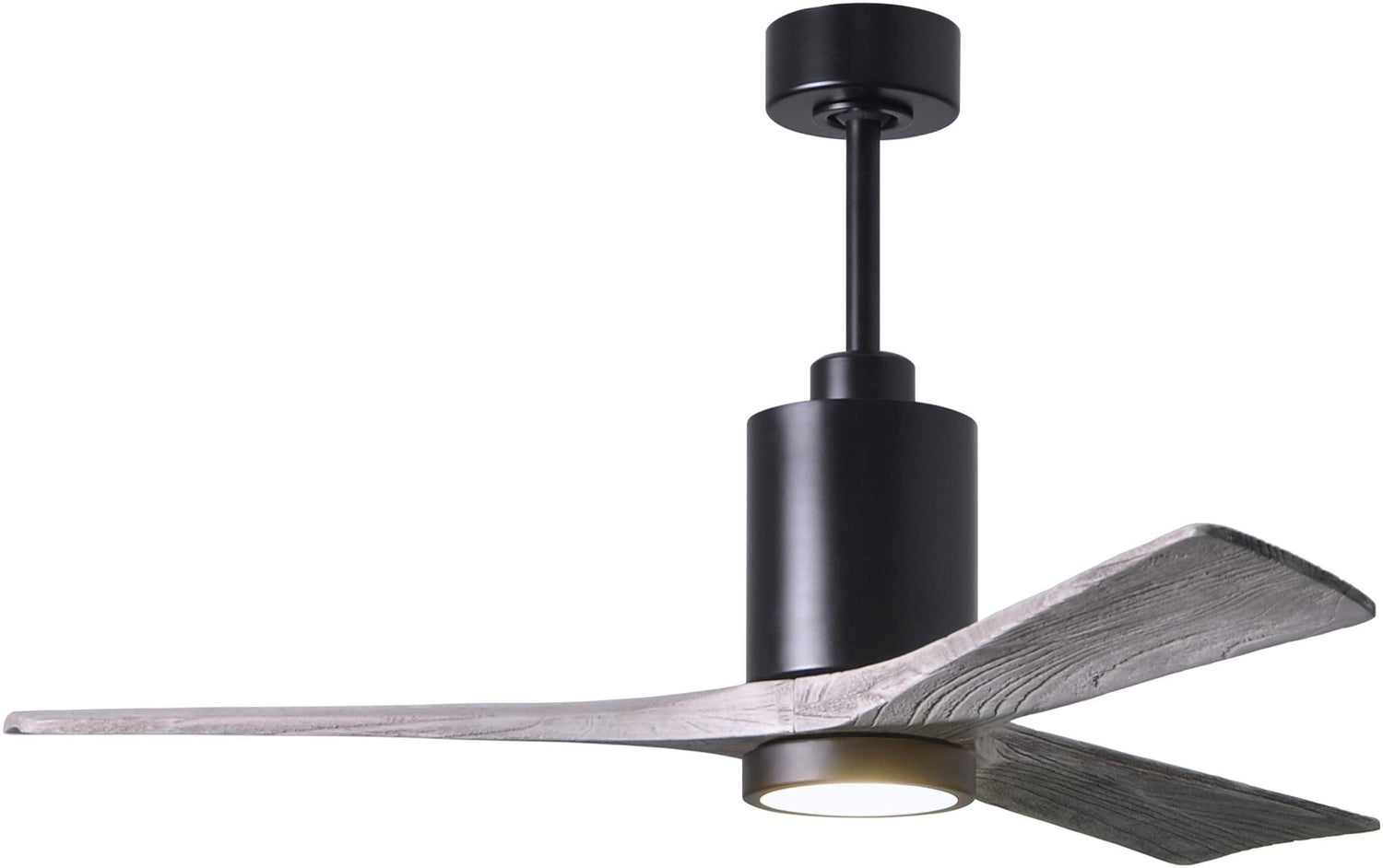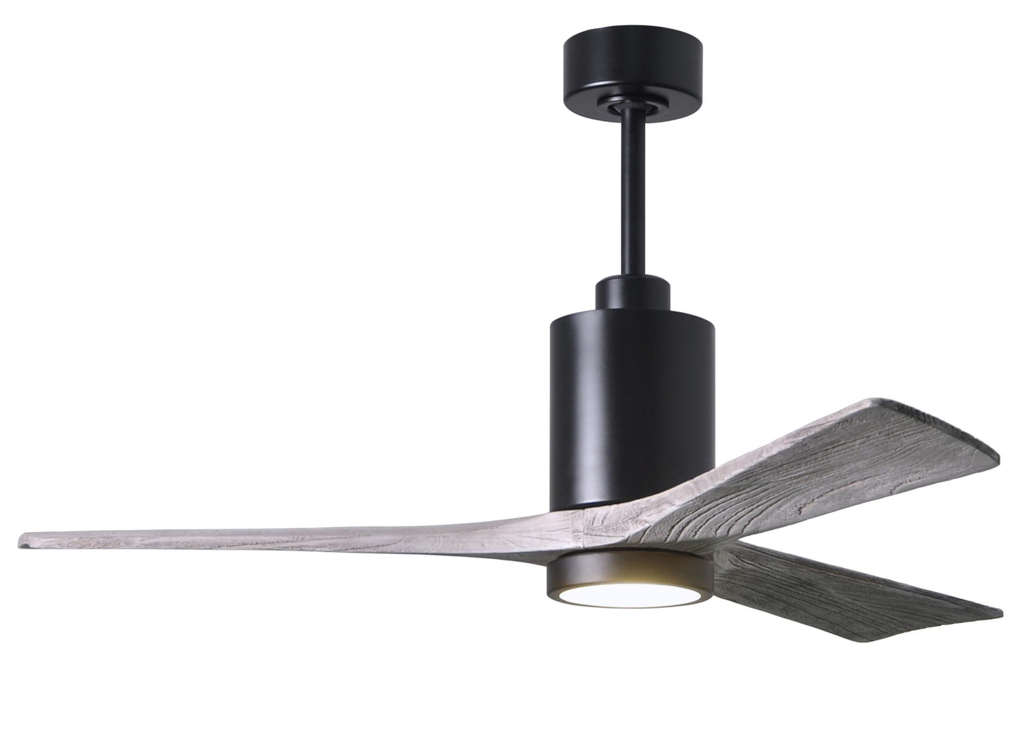 Matthews Fan PA3-BK-BW-52 Patricia-3 three-blade ceiling fan in Matte Black finish with 52” solid barn wood tone blades and dimmable LED light kit